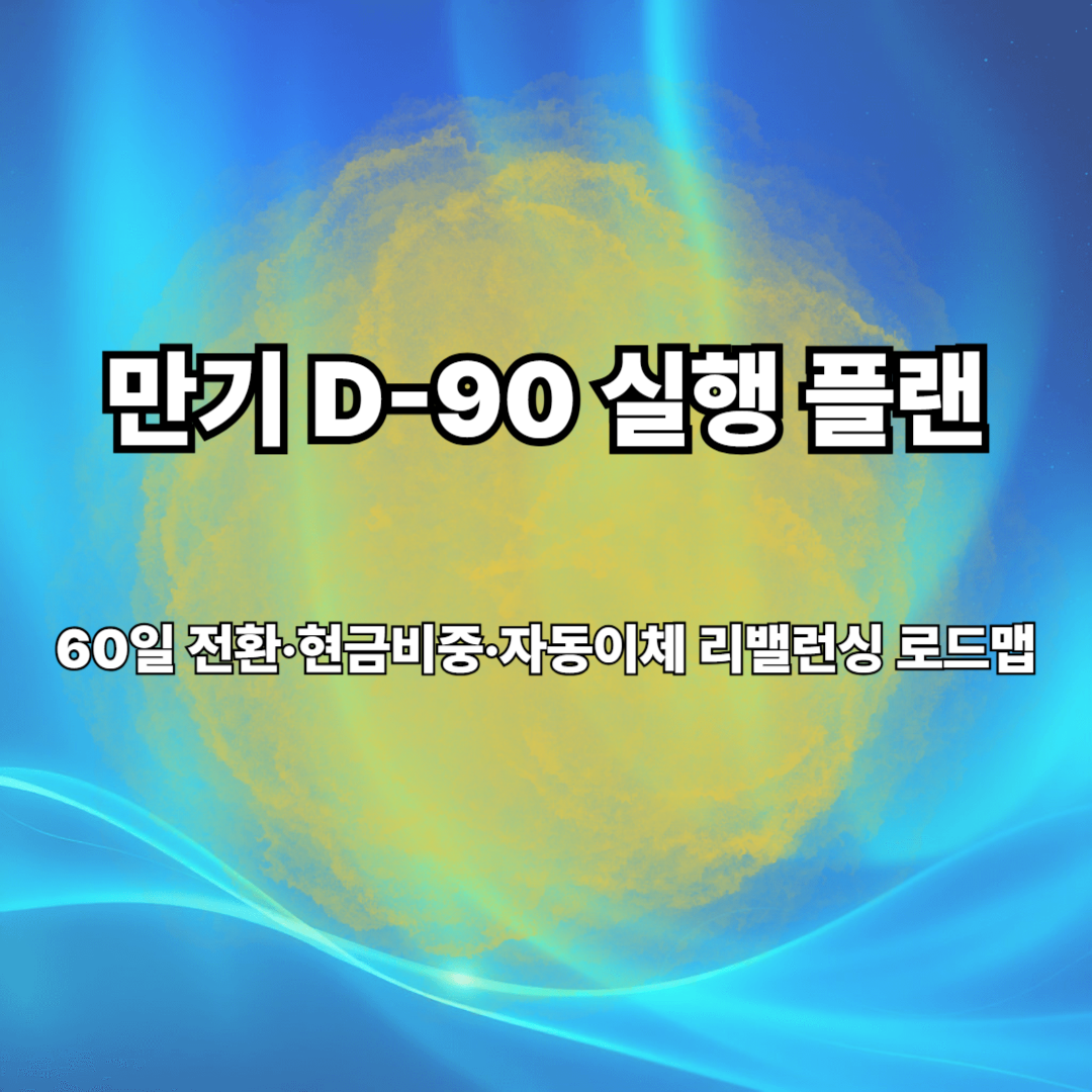 만기 D-90부터 D+?까지의 주차별 액션을 정리했습니다. 핵심은 만기 후 60일 내 전환(연금저축/IRP) [확인 필요], 현금 비중 사전 확보, 자동이체·리밸런싱 규칙화, 그리고 증빙 보관입니다. 기한·요건·수수료는 기관·연도별 상이해 일부 항목은 [확인 필요]로 표기했습니다.